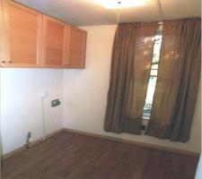 The laundry room has new flooring and